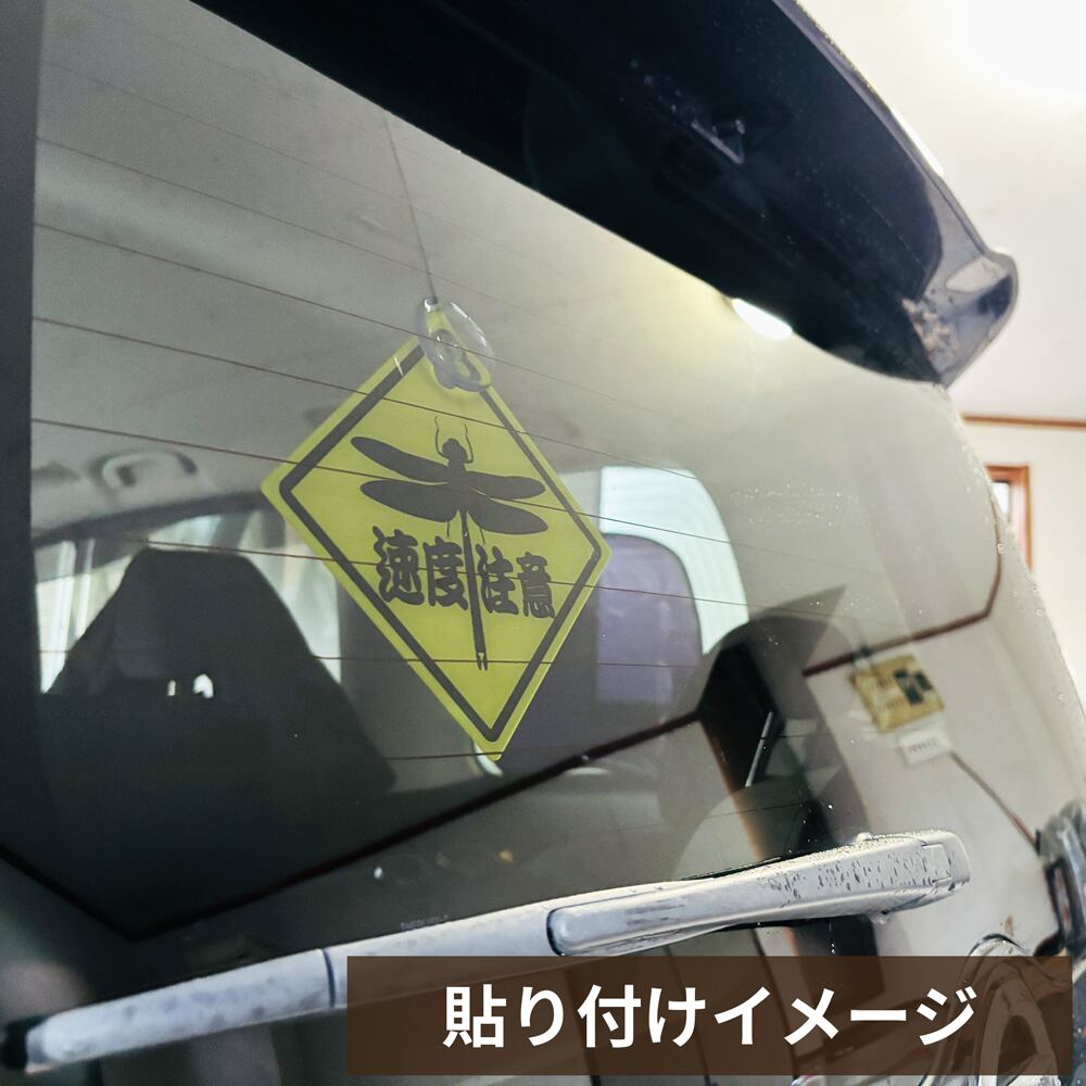 恐竜カーサイン 【速度注意】 吸盤取り付け 昆虫 トンボ 子供 赤ちゃん カーステッカー アクリル 車用セーフティーサイン あおり運転対策