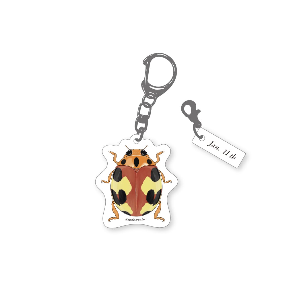 366日昆虫アクリルキーホルダー 1月11日 アミダテントウ 虫好き コレクション 誕生日 プレゼント 記念日 ギフト 子供 学習 自由研究