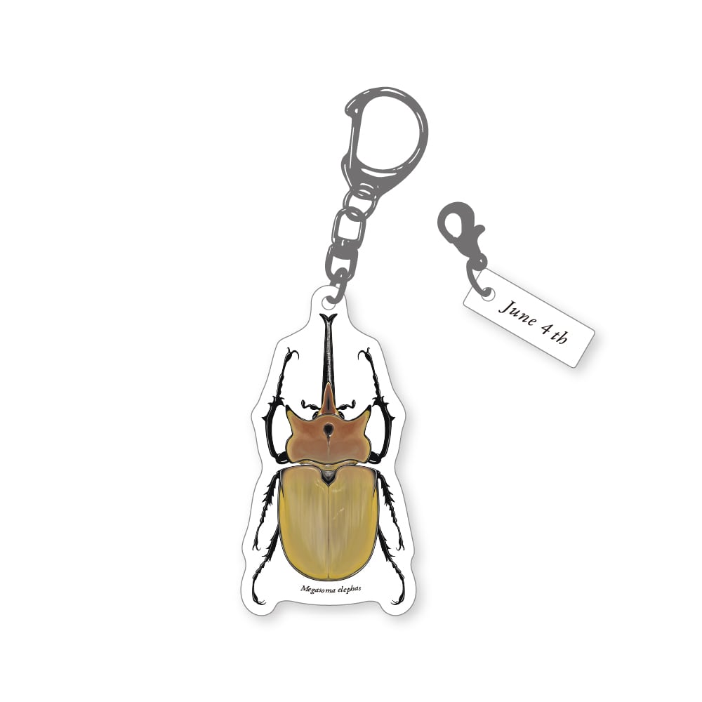 366日昆虫アクリルキーホルダー 6月4日 エレファスゾウカブト 虫好き コレクション 誕生日 プレゼント 記念日 ギフト 子供 学習 自由研究