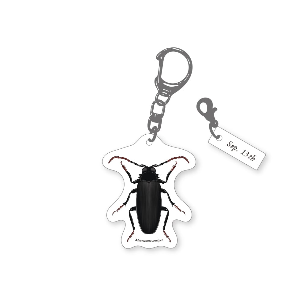 366日昆虫アクリルキーホルダー 9月13日 ノコギリカミキリ 虫好き コレクション 誕生日 プレゼント 記念日 ギフト 子供 学習 自由研究