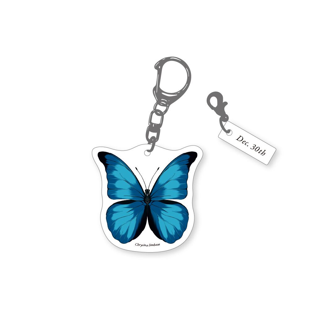 366日昆虫アクリルキーホルダー 12月30日 レテノールモルフォ 虫好き コレクション 誕生日 プレゼント 記念日 ギフト 子供 学習 自由研究